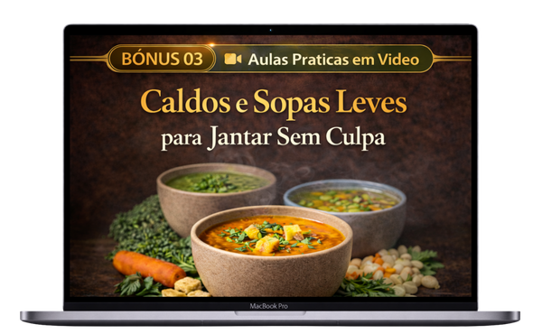 Neste bônus, você terá acesso a aulas práticas em vídeo para preparar sopas e caldos saudáveis, ideais para jantares leves, nutritivos e sem culpa.